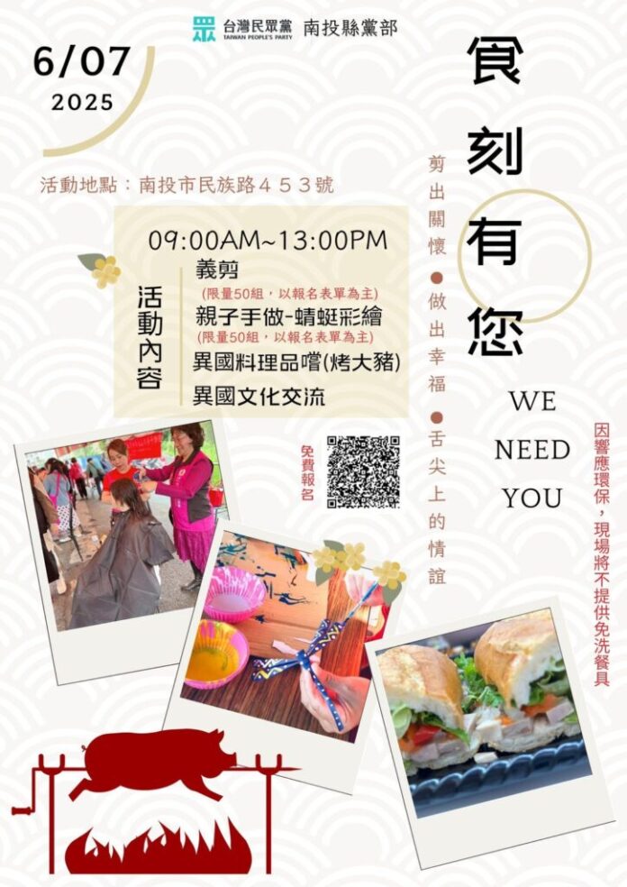 由新住民不分區立法委員麥玉珍主辦的南投端午「食刻有您」活動,將於6月7日(星期六)上午9點至12點半在南投市民族路453號(民眾黨南投黨部)盛大舉行!這場活動結合異國美食、文化交流與親子體驗,誠摯邀請民眾共襄盛舉。