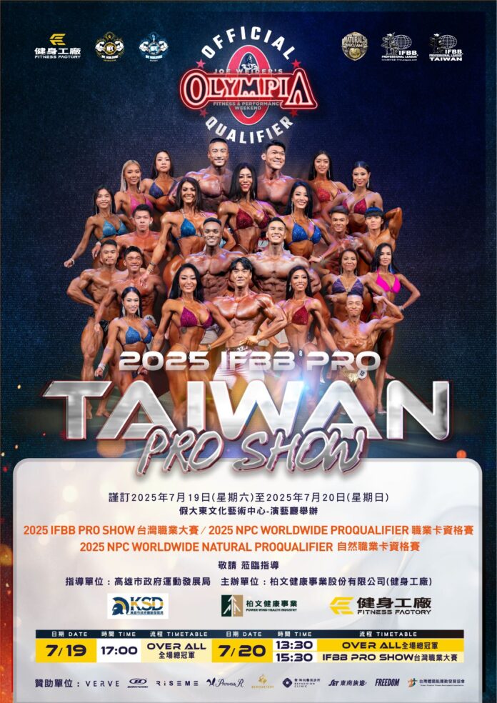 圖說 2025 IFBB PRO SHOW 台灣職業大賽 7月18日至20日 高雄大東文化藝術中心隆重登場
