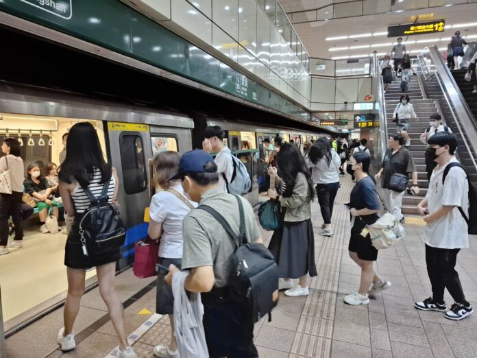 15日為優惠措施實施後上班上課首日 ,臺北捷運加派服務人員著黃色背心、手持指揮棒,引導旅客上下車,疏運順暢。