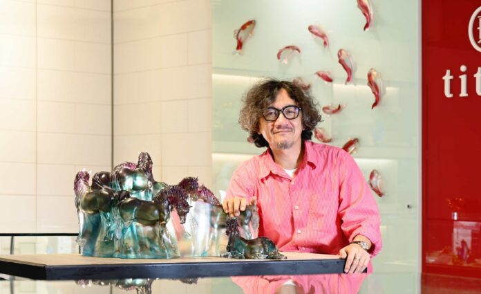 ttittot 琉園設計總監陳俊維與「馭極」生肖馬系列、以故宮聯名之作《八逸》與新作《萬丈光芒》領銜,演繹馬年典藏風華。照片提供: tittot 琉園