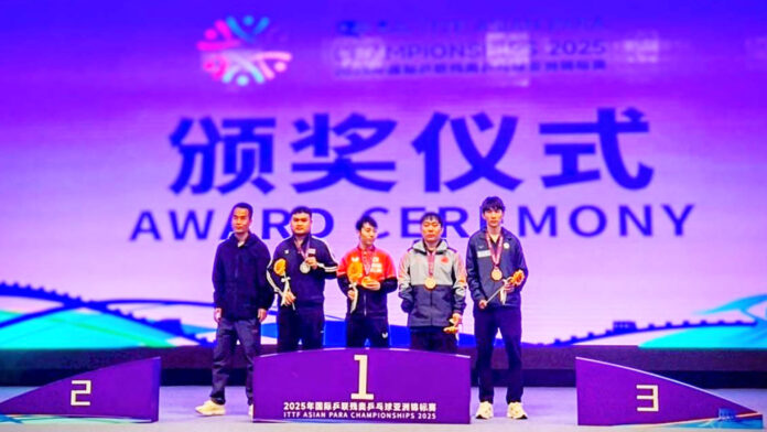報新聞/中部特派員鄒志中報導 台灣之光!台中之光!臺中之光閃耀國際!臺灣桌壇在國際賽場再傳捷報!臺中的驕傲!臺灣的光榮!「2025北京帕拉桌球亞洲錦標賽」日前圓滿落幕,代表我國出賽的臺中市好手林姿妤、蘇晉賢在教練王明月帶領下表現極為亮眼,總計為國家隊貢獻3金1銅的豐碩佳績。其中,林姿妤更以勢不可擋的氣勢,一舉勇奪女子單打、女子雙打及混合雙打三面金牌,成功締造歷史性的「三金大滿貫」成就,不僅為臺灣揚名國際,也順利取得2026年世界盃桌球錦標賽的參賽資格。