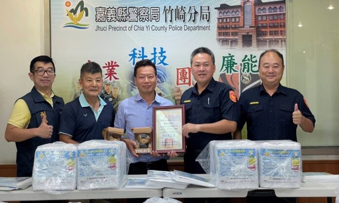 嘉仕通豐業有限公司董事長陳啟宏表示,很榮幸能參與這次竹崎警分局打詐隊受贈儀式,也是希望透過自家生產之吸油布產品結合識詐文宣做為警方走進社區、市場、廟宇等地方宣導反詐活動的宣導品,用日常生活用品提升長輩、家庭主婦等人積極主動參與反詐工作,降低遭騙可能性。