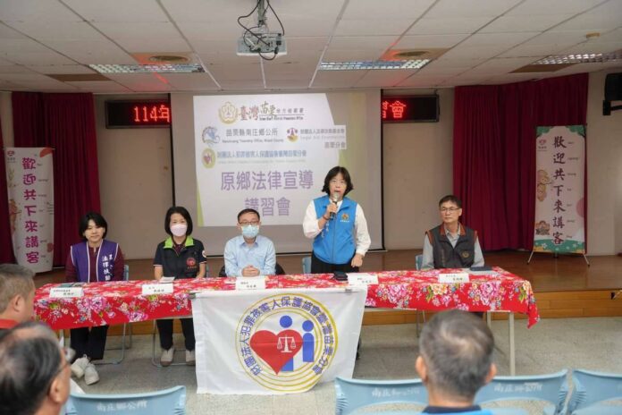 苗栗地方檢察署於今(23)日攜手犯罪被害人保護協會苗栗分會、法律扶助基金會苗栗分會及南庄鄉公所,於賽夏族、泰雅族原民聚居之苗栗縣南庄鄉,舉辦法律常識講習會。本次活動由楊岳都檢察官、李鈞暉書記官長出席,邀請南庄鄉長羅春蓮、公所同仁、村(里)鄰長、民意代表、調解委員、租佃委員及一般民眾與會,旨在化被動為主動,深入社區宣導反毒、反詐騙、犯罪被害人相關權益及法律扶助事項,以維護原鄉淨土及保障原住民權益。