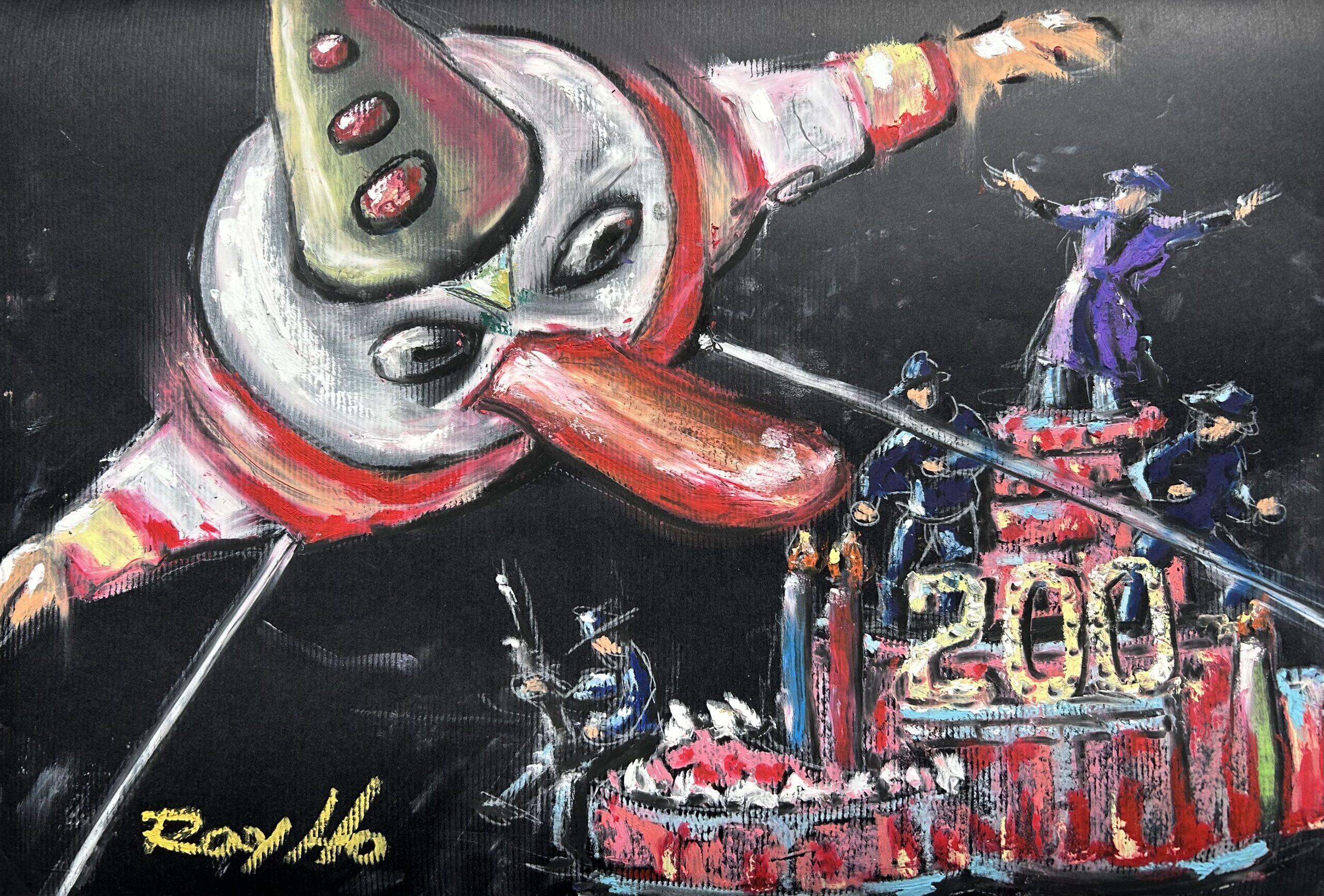 歡樂輕快的樂聲中, 一個超大型的充氣小丑在高空中飄浮著, 隨著地面五彩繽紛的遊行車隊緩緩前進, 慶祝活動正如火如荼地進行着, 小丑(Jocker)在車上載歌載舞, 市民歡欣鼓舞為週年慶大呼小叫, 導演用那悲憫的鏡頭從高空俯看地上的市民, 有如螻蟻一般地四處流竄顯得格外渺小又茫然無助。鈔票有如雪花飄飄般, 温柔又優雅地牽著民眾的手走向死亡的溫床。